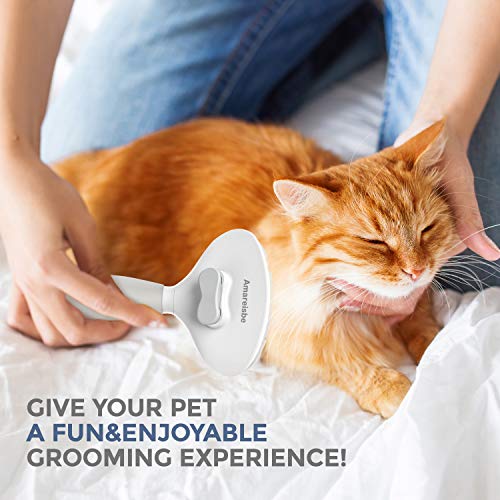 PERFECT BRUSH FOR SHEDDING AND GROOMING: Amareisbe Self Cleaning Slicker Brush will remove almost enough hair to create a second dog/cat! Removes the hair quickly, perfect for dogs & cats & pets of SMALL to MEDIUM and hair length, gently shedding loose hair, eliminate tangles, dander, mats and dirt. (NOTE: Combing in the direction of hair growth)