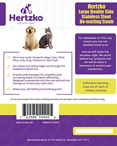 ★ THE BEST DEMATTING COMB TO REMOVE TANGLES, KNOTS, AND MATS – Hertzko’s Double Sided De-matting Tool for Dogs gently removes Loose Hair, and eliminates Tangles, Knots, Dander and trapped Dirt. WORKS GREAT ON DOGS AND CATS WITH ALL SIZES AND HAIR TYPES!