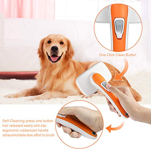 EASY TO CLEAN -When you’re done brushing your pet, Simply click the button and the bristles retract back into the dog brush, making it easy to remove hair.the whole process only takes you 5 seconds. cleanup is a breeze.
