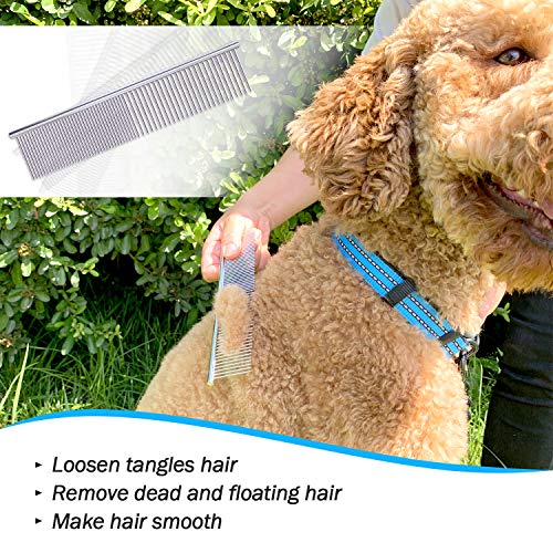 * 2 sided DESIGN- The 9 teeth side as a de-matting rake for stubborn matts and tangles. The 17 teeth side as an undercoat rake for faster results thinning and de-shedding. The two sided comb helps work through stubborn matt’s and providing protection without scratching the pets undercoat.Stainless steel comb has two kinds of spacing of teeth. Sparse teeth help loosen fluffy hair and makes shapes; fine teeth can make hair smooth.
