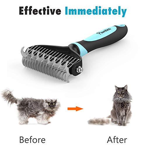 【SHARP BUT GENTLE】:This design provides much safer experience than the traditional sickle shape mat combs, recommended for the pet with sensitive skin. Your pet will enjoy grooming without pain or damaging the topcoat.