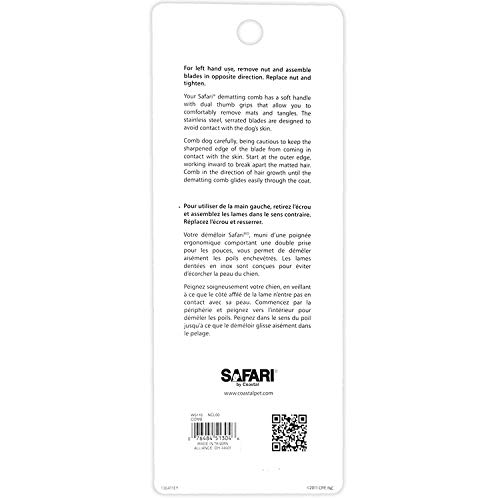 1-Pack Safari Dog De-Matting Comb made of Stainless Steel with soft handle.