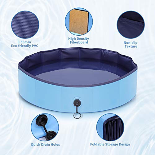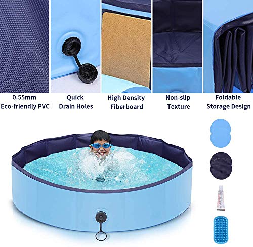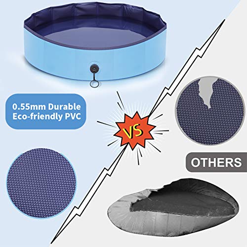 【Non-slip & Durable Dog Pool】Using high-quality environmentally friendly PVC material, the thickness reaches 0.55mm, which is much thicker than the market to ensure durability. The built-in fiberboard makes pet pool more stable and not easy to collapse. With the unique non-slip bottom design, it is more safer to bath or play in dog swimming pool.