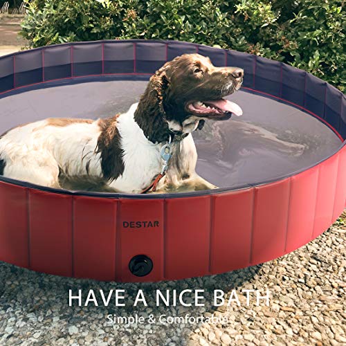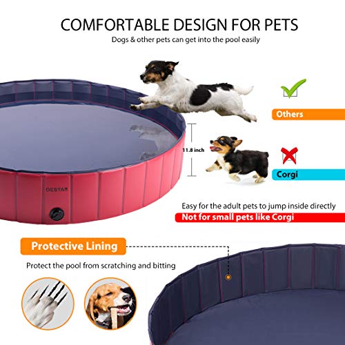 PREMIUM MATERIAL – Made of high-quality, thick PVC, it is durable enough to use and will not go moldy, which can ensure the safety of your pets; Built-in 0.18” thick high-strength compression wood board, the pool is more durable and not easy to collapse