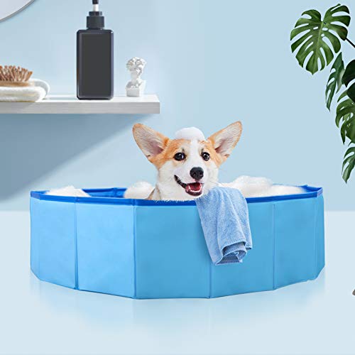 ALL-PURPOSE DESIGN:This foldable swimming pool has many uses including a cat or dog pool, dog bathing tub, toddler swimming pool, sandbox, outdoor water pond,baby bathtubelling or ball pit.