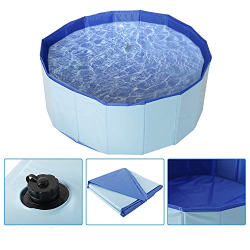 【Materials】: Made of safe PVC and fiberboard material, the dog pool is sturdy enough to use in a long time.