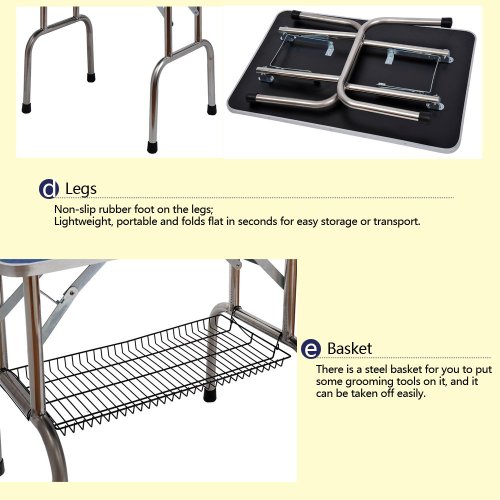 Adjustable stainless steel arm with two 50cm noose. stainless steel legs and addtional basket for long use.