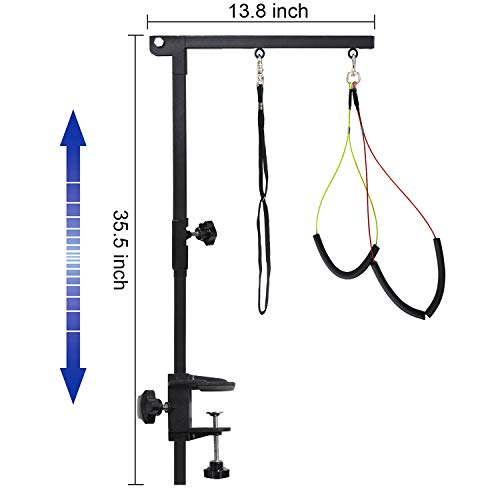 【Portable Adjustable Grooming Arm】Our dog grooming arm height can be maximum adjusted to 35.5” and the clamp fits table up to 2.3″ thickness, it compatible with virtually all tables and you can easily find a comfortable height for your dog.