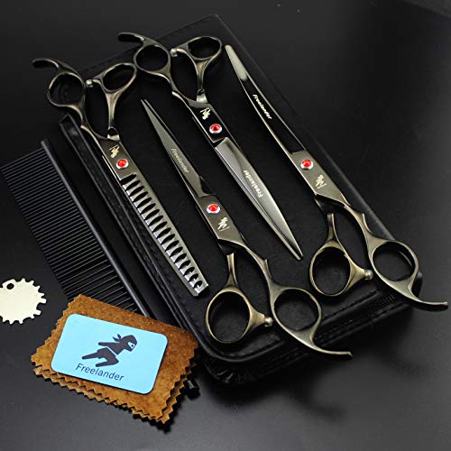 HIGH QUALITY MATERIAL &TECHNOLOGY : The shears are made by high-quality japan stainless steel with 62 HRC high hardness, so the scissors are durable and sharp. Each scissors suffers 60 process carefully polishing and grinding, so our scissor reduces messy hair clutters as no pet hair gets caught in between its blades, unlike other dog grooming scissors on the market.