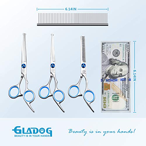 ★Professional Pet Grooming Scissors Kit★-The kit includes 1 × 6.5-inch thinning shear, 1 × 6.5-inch curved scissor, 1 × 6.5-inch straight scissor, 1 × pet comb, 1 × cleaning cloth, 1 × black leather case