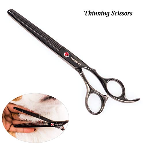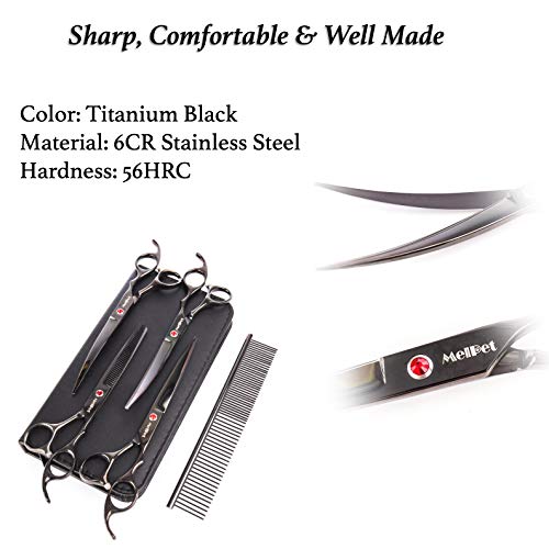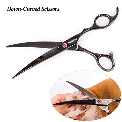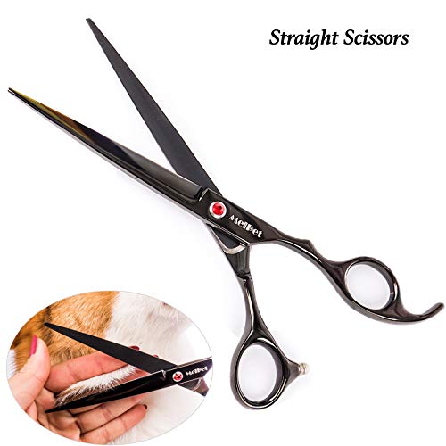 ???? 【FULL SET FOR GROOMING】- Straight Scissors 7 inches with Round Tip for trimming + Thinning Scissors 7.0 inches + Curved Down Scissors 7 inches + Curved Up Scissors 7 inches + Bonus Grooming Comb 7 inches + Cleaning Cloth + Stylish black Leather Case.