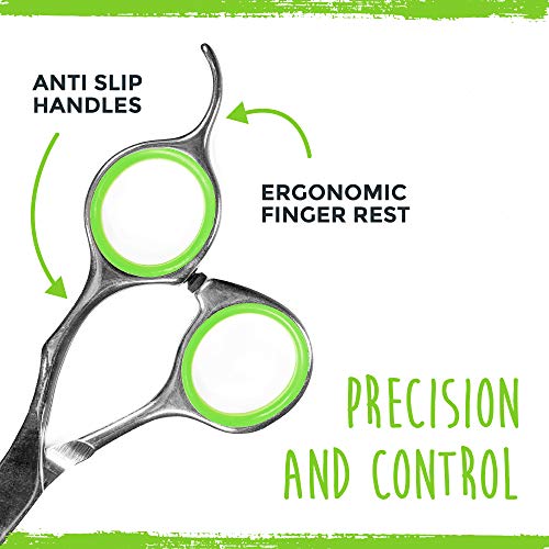 2 Size Pack For Easy Body And Facial Grooming: Use our large 6.5” shears to trim your dog’s body, and the smaller 5.5” shears to trim those hard-to-reach and delicate areas like the nose, eyes, ears, and paws.