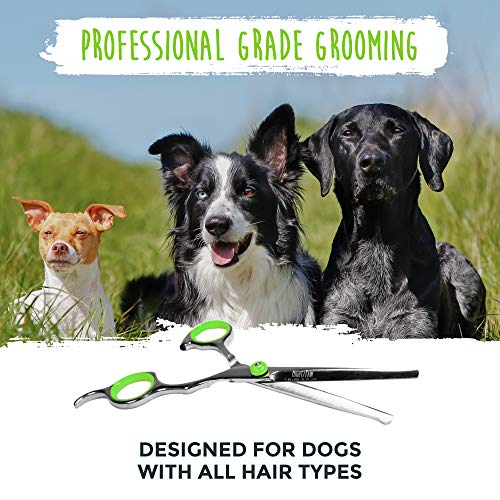 Mighty Paw Professional Dog Grooming Shears (2 Pack) | Pet Hair Cutting Scissors Set, with Rounded Safety Tips & Sharp Titanium-Coated Stainless-Steel Blades. for Body, Paw and Face Trimming